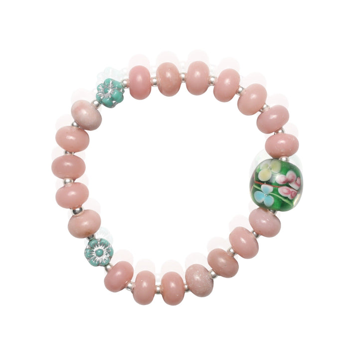 Blush Bloom Stretch Bracelet – Pink Opal, Floral Glass & Sterling Silver