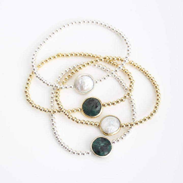 Gold Bead Bracelet with Emerald or Pearl - Seabreeze Bracelet