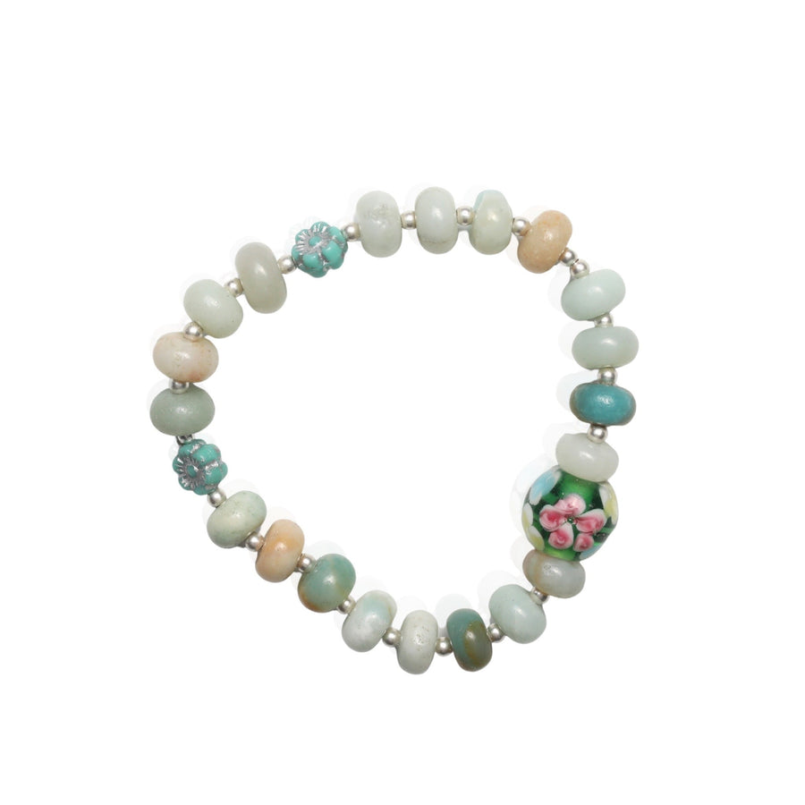 Seafoam Bloom Stretch Bracelet – Amazonite & Vintage Glass Beads