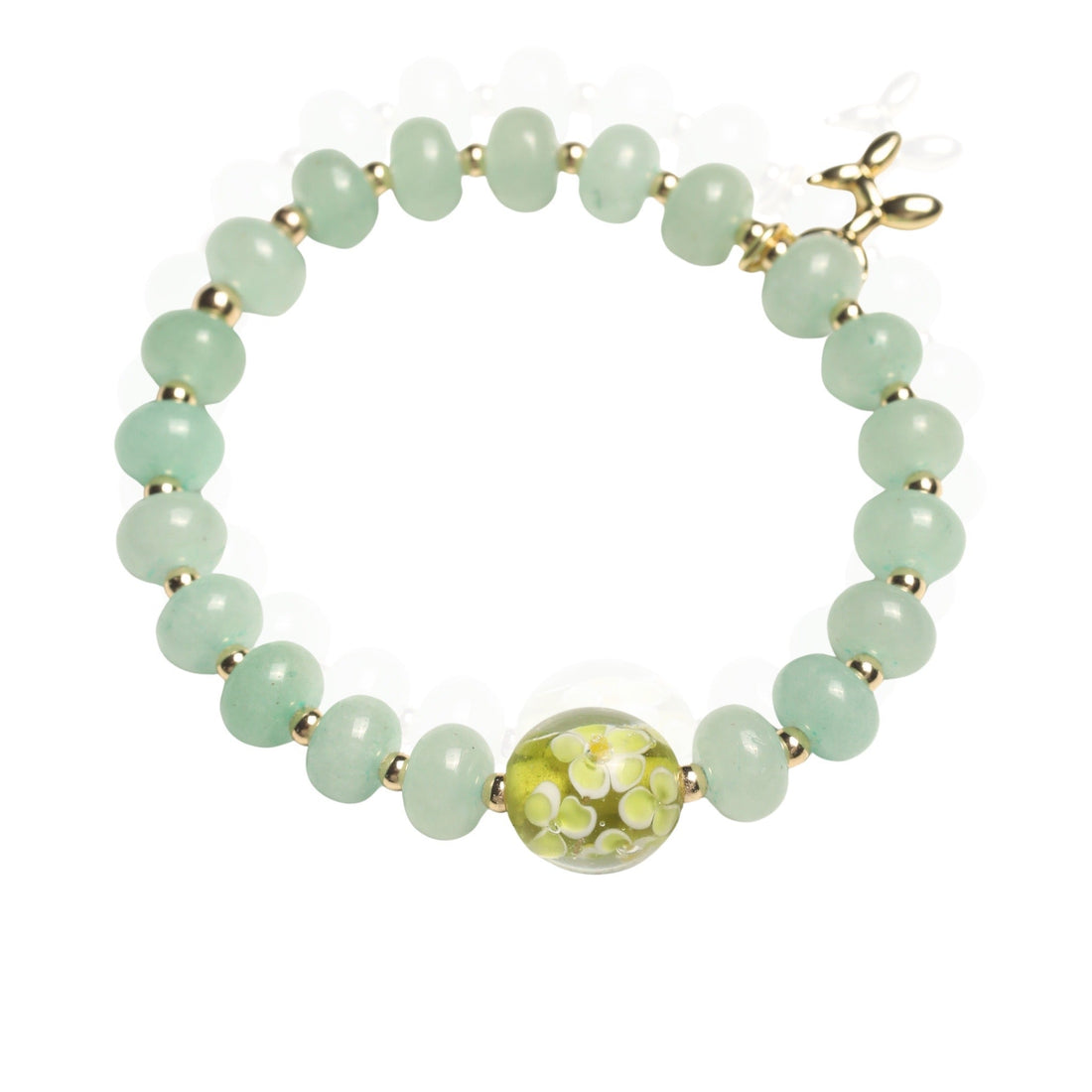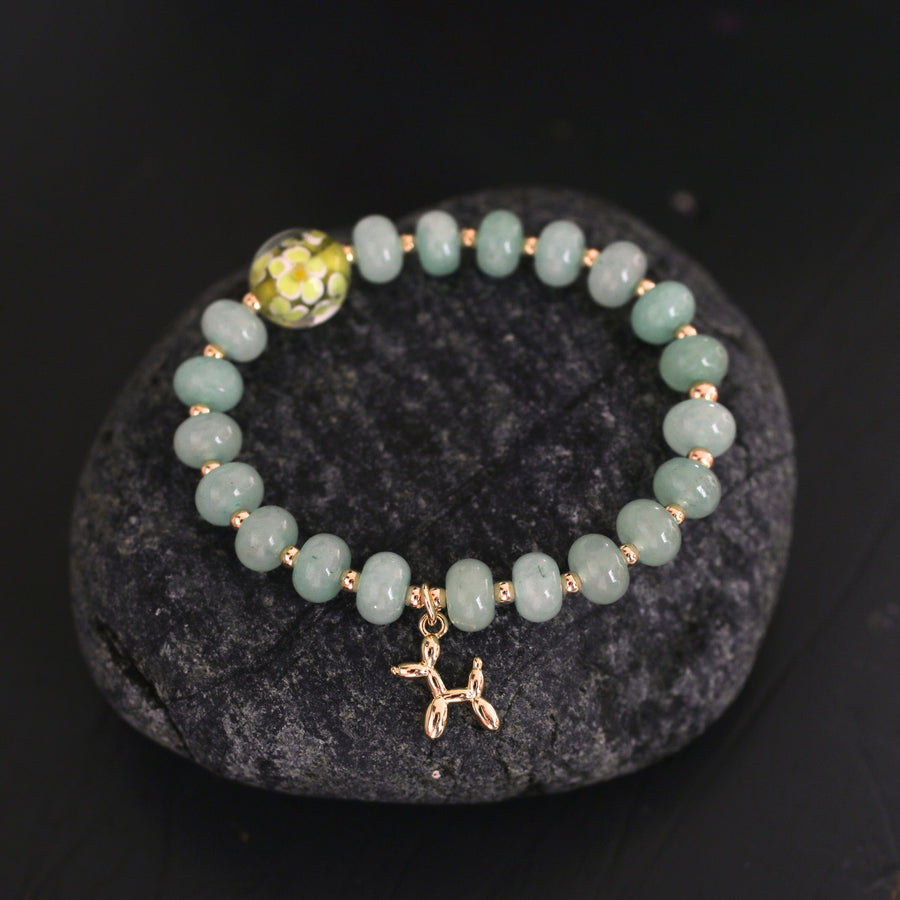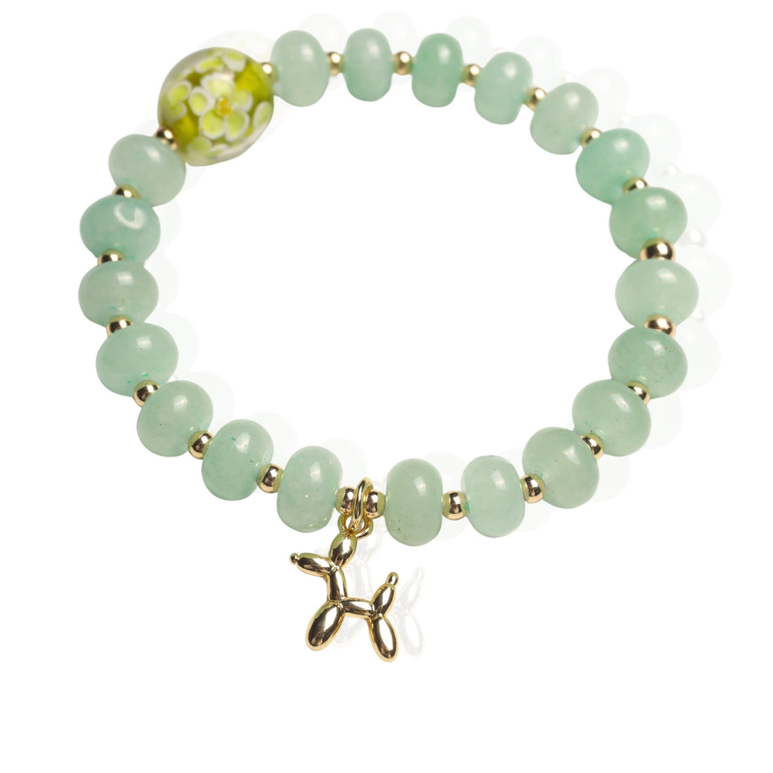 Pop Play Stretch Bracelet – Chrysoprase, Floral Glass & Balloon Dog Charm