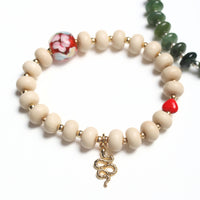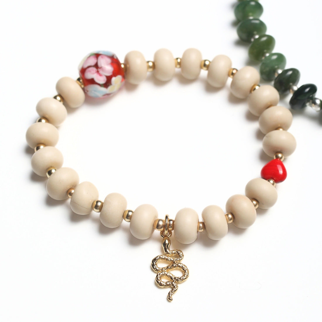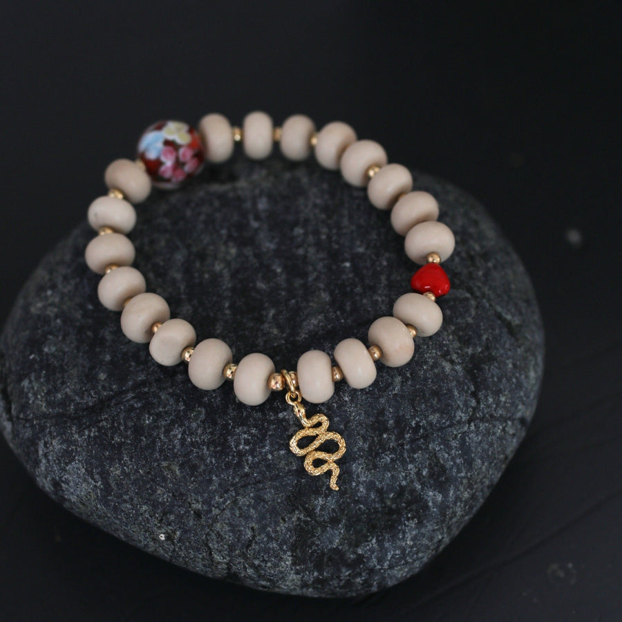 Wild Heart Stretch Bracelet – Fossil Jasper, Red Glass & Snake Charm